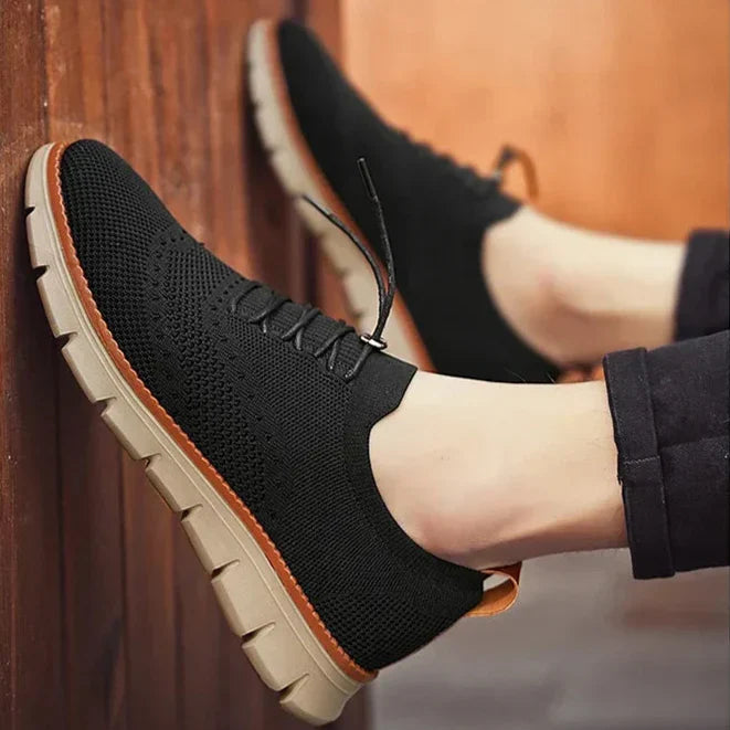 A breathable knit upper and brogue-inspired details bring a tailored profile to this lightweight sneaker, finished with shock-absorbing cushioning and a soft, flexible fit, perfect for smart casual settings.